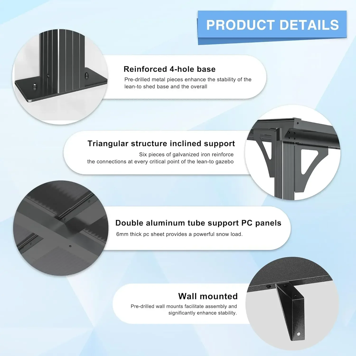 - [Premium Roof Sheet and Personalized Design] This patio awning is designed for stability and strength, with armor-grade roof sheets. Metal gazebo are 6 times thicker than normal roof sheets, triangular steel reinforcements and cross-braced top tubes increase stability by 50% over standard pergolas. In addition, sunroom polycarbonate top provides UV protection by reflecting 99% of UV rays