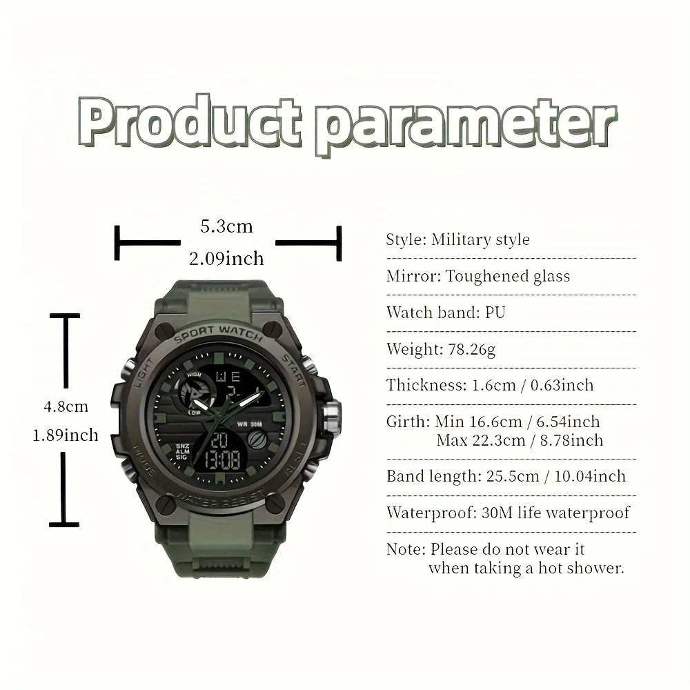 Watches for Men Watch Outdoor LED Stopwatch Digital Electronic Large Dual Display Tough